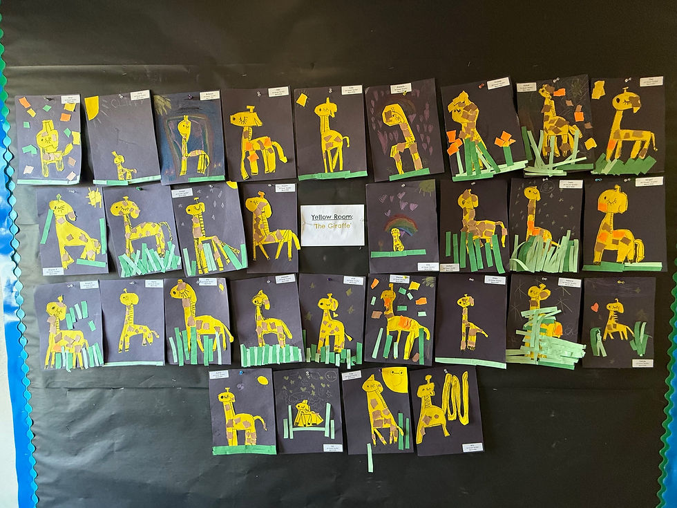 We are excited to display 2 new art installations in the front office: Purple Room’s Pop Art Portraits and Yellow Room’s Giraffes.